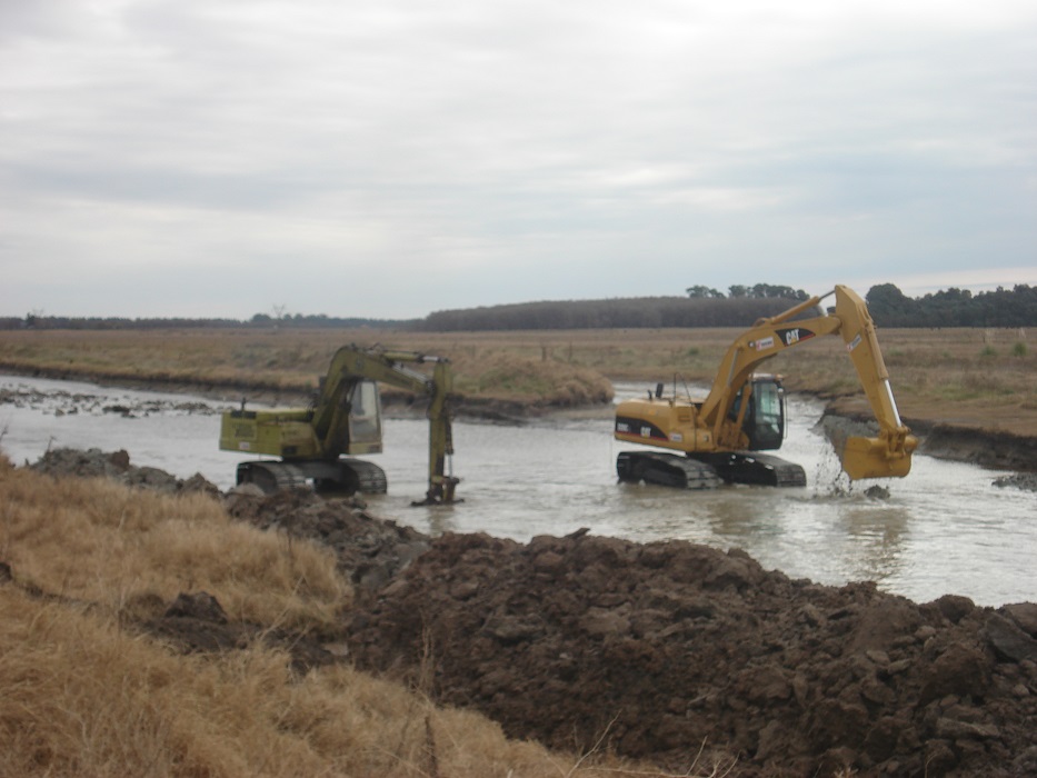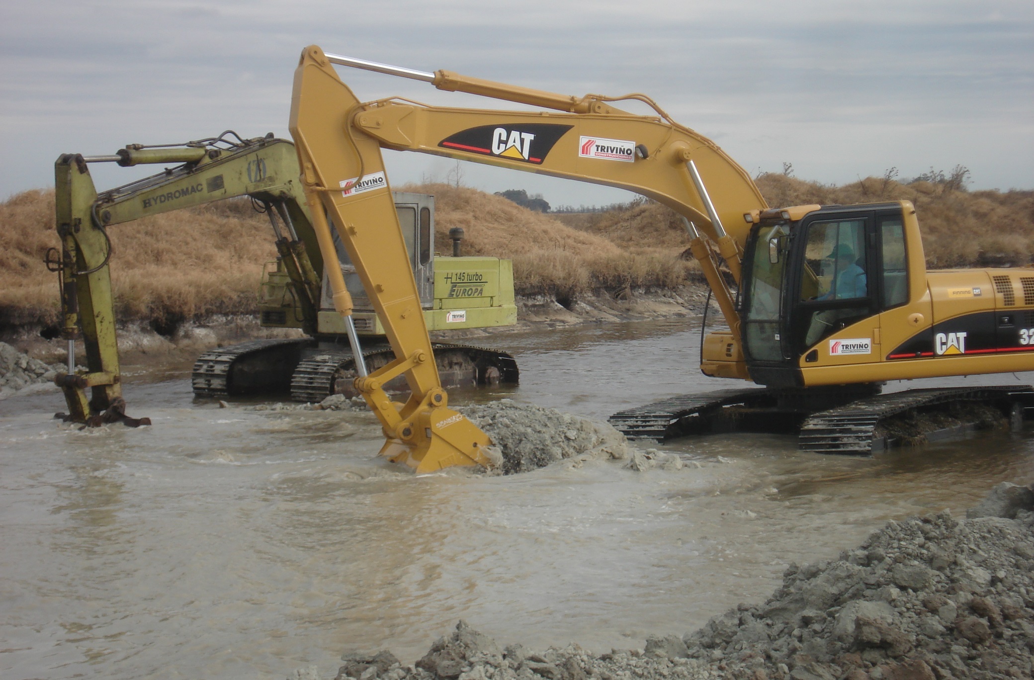 Las excavaciones realizadas, conforman una sección hidráulica trapezoidal de 10 m, de ancho de fondo y taludes 45 m.