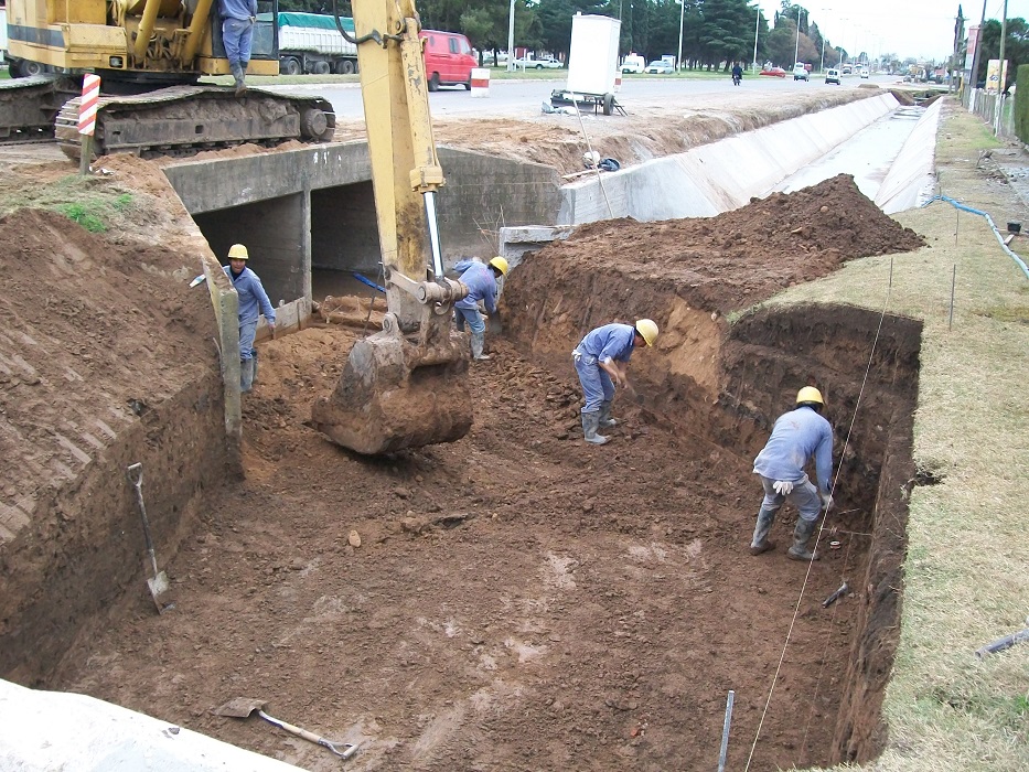Se realiza mediante la construcción de conductos rectangulares de hormigón armado de distintas dimensiones. Asimismo contempla el revestimiento, con Hº Aº, de un canal a cielo abierto, la construcción de dos alcantarillas y limpieza y perfilado de canales de tierra.
