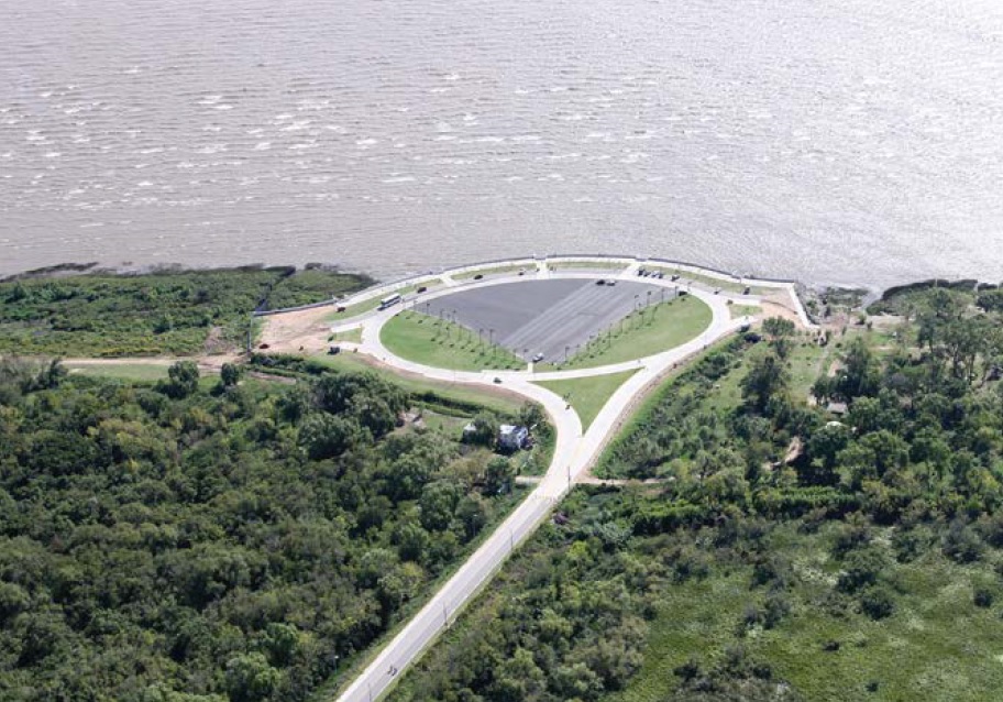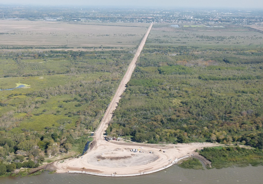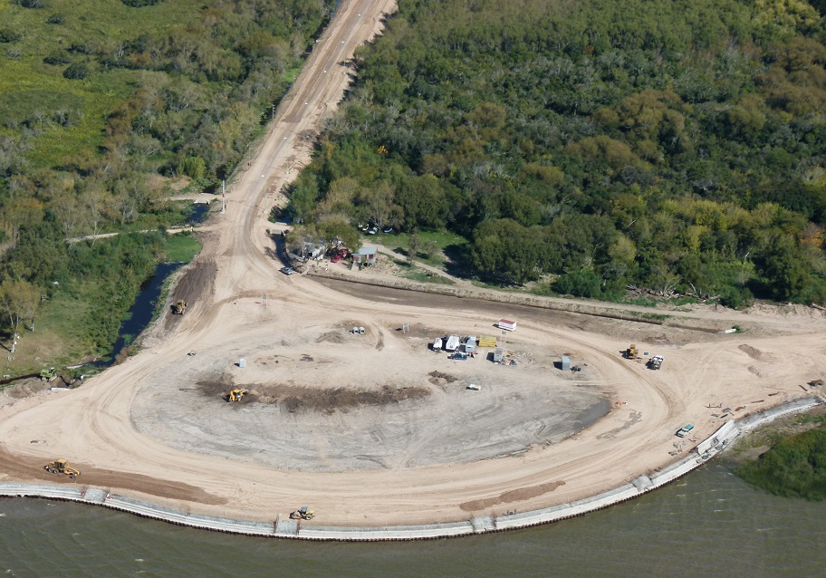 La Av. 63 culmina en una rotonda de pavimento de hormigón cabecera de la Obra y defensa de costanera.