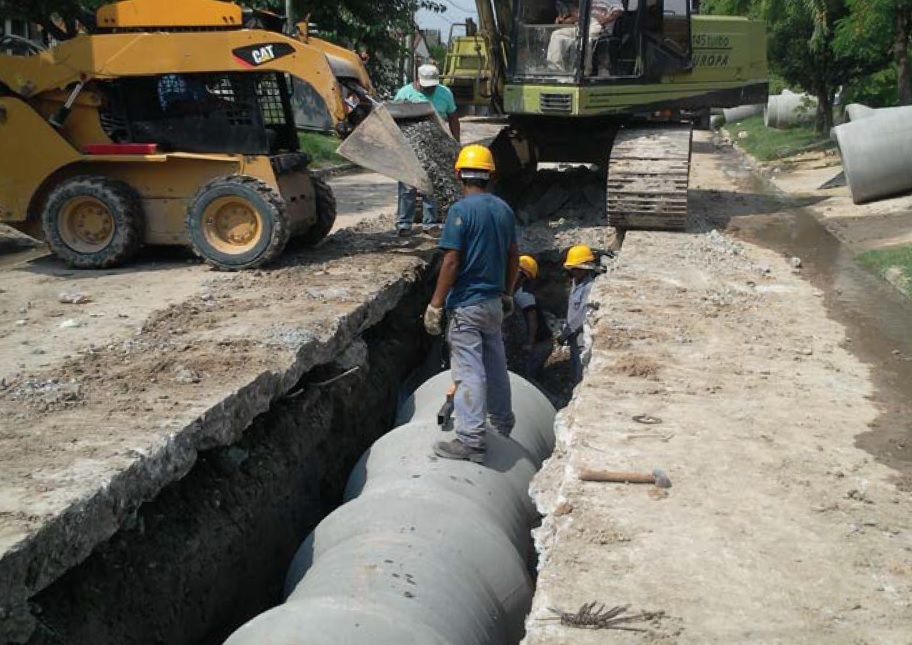 Se ejecutan conductos de hormigón premoldeados de distintos diámetros (2581ml) para colectar una zona de la otra. Se reconstruye el pavimento y las veredas de los lugares que se deteriora por la colocación de cañería.