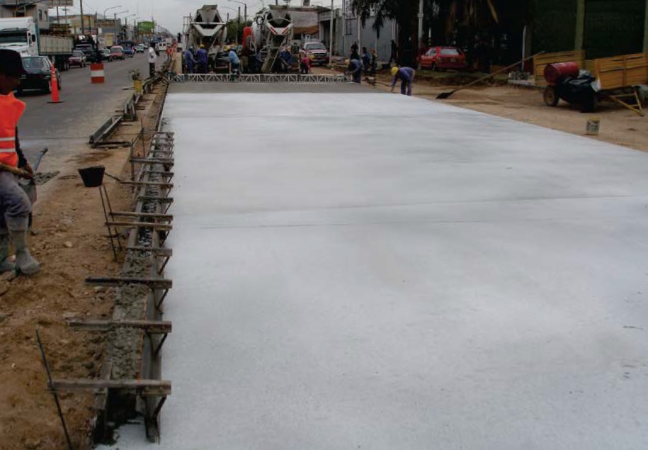 a continuación se ejecutó una capa de Suelo Cemento de 12 cm. Todo el paquete estructural se complementa con Pavimento de Hormigón de 22 cm, completando una superficie de 55.020 m2. La traza está compuesta